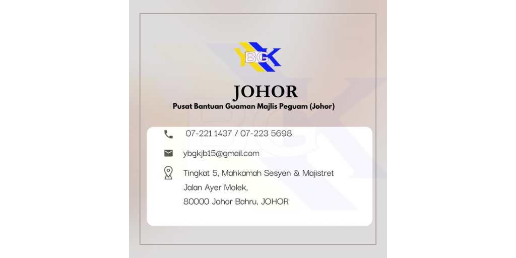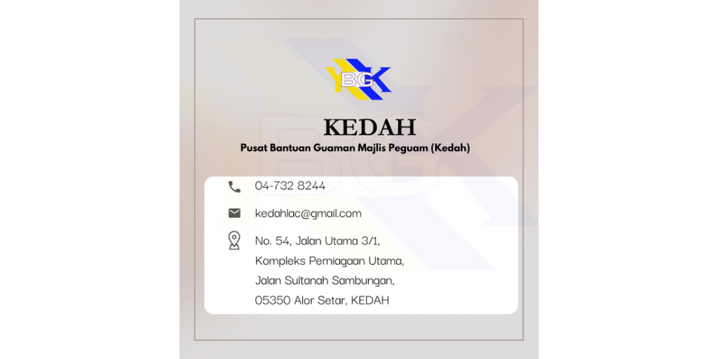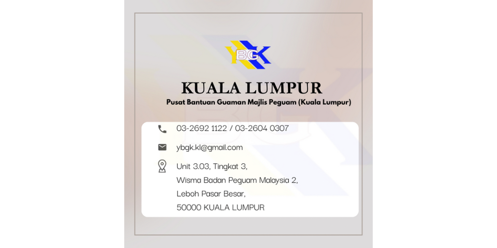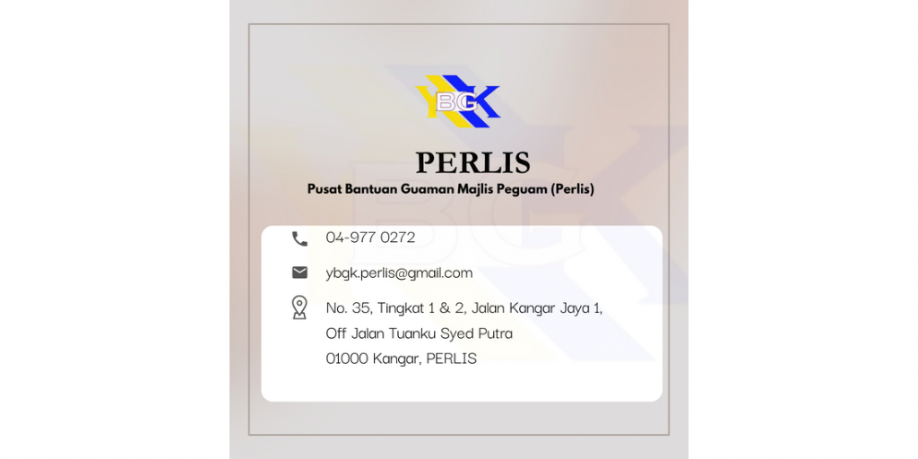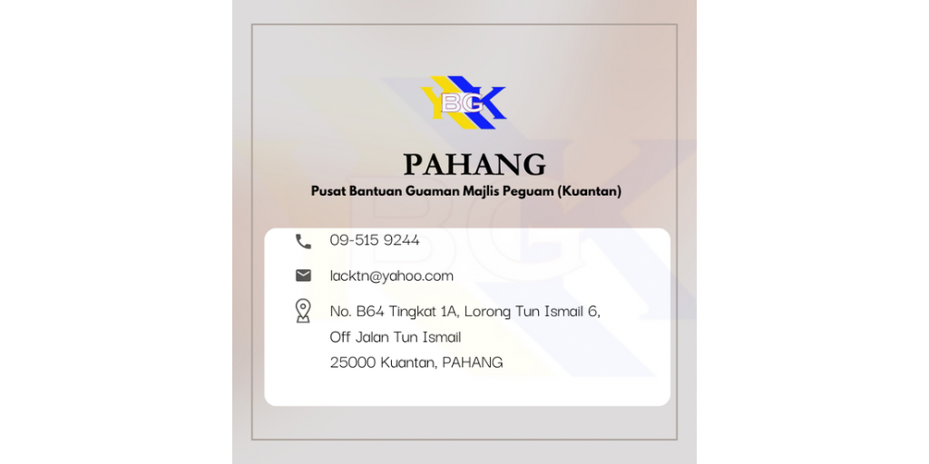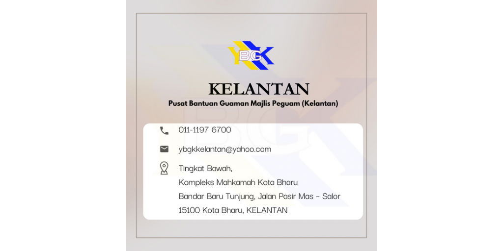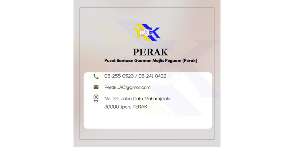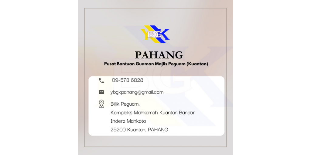 Untuk mendapatkan perkhidmatan Nasihat dan Bantuan Guaman PERCUMA bagi kes jenayah, sila hubungi YBGK di